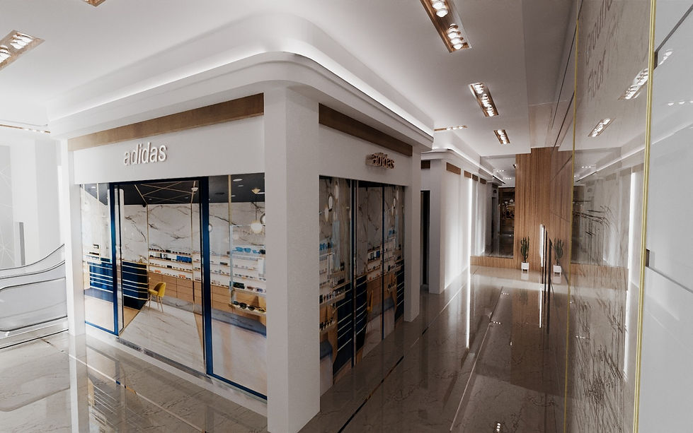 This commercial interior project was designed to reflect modern luxury through a refined palette of white, natural wood, and golden accents. The design emphasizes spaciousness and visual clarity, using carefully selected materials and lighting.